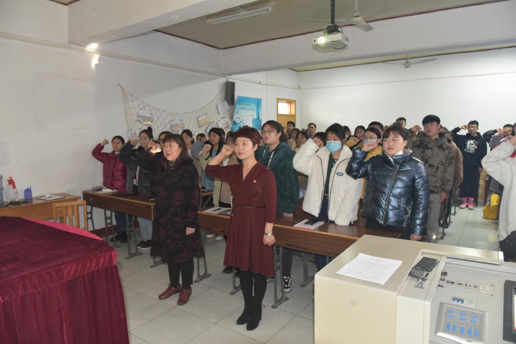 12月8日,EMC易倍新发展党员宣誓仪式在4教204举行,仪式由公司党政办公室田晓光老师主持,员工第一支部书记康文霞领誓,党委书记刘会娟讲话,员工党支部书记和64名新发展员工党员参加。