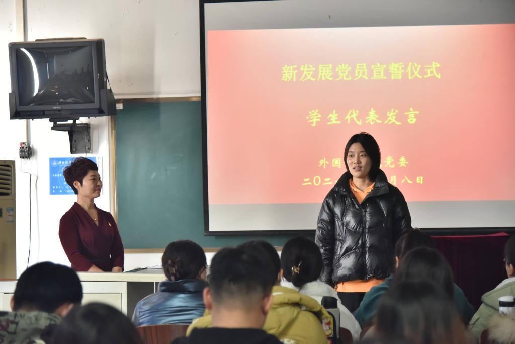 宣誓结束后,新党员代表针对入党动机、加入党组织过程中的收获与感受、如何做一名合格党员等方面进行了发言,表达了自己对党的无限忠诚和全心全意为人民服务的坚定决心。