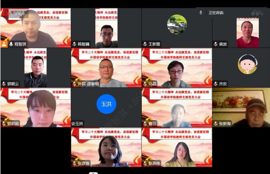 最后,支部书记张彦青老师总结,习近平总书记在党的二十大报告中强调,加快建设高质量教育体系。今天党和国家事业对高等教育的需求、对科学技术和优秀人才的需要比以往任何时候都更为迫切。这也对我们这种地方性高校提出新任务和新要求。高校在服务科教兴国战略、人才强国战略、创新驱动发展战略中,在加快“双一流”建设中,在落实《中国教育现代化2035》等要求中,更需要创新发展、转型发展。