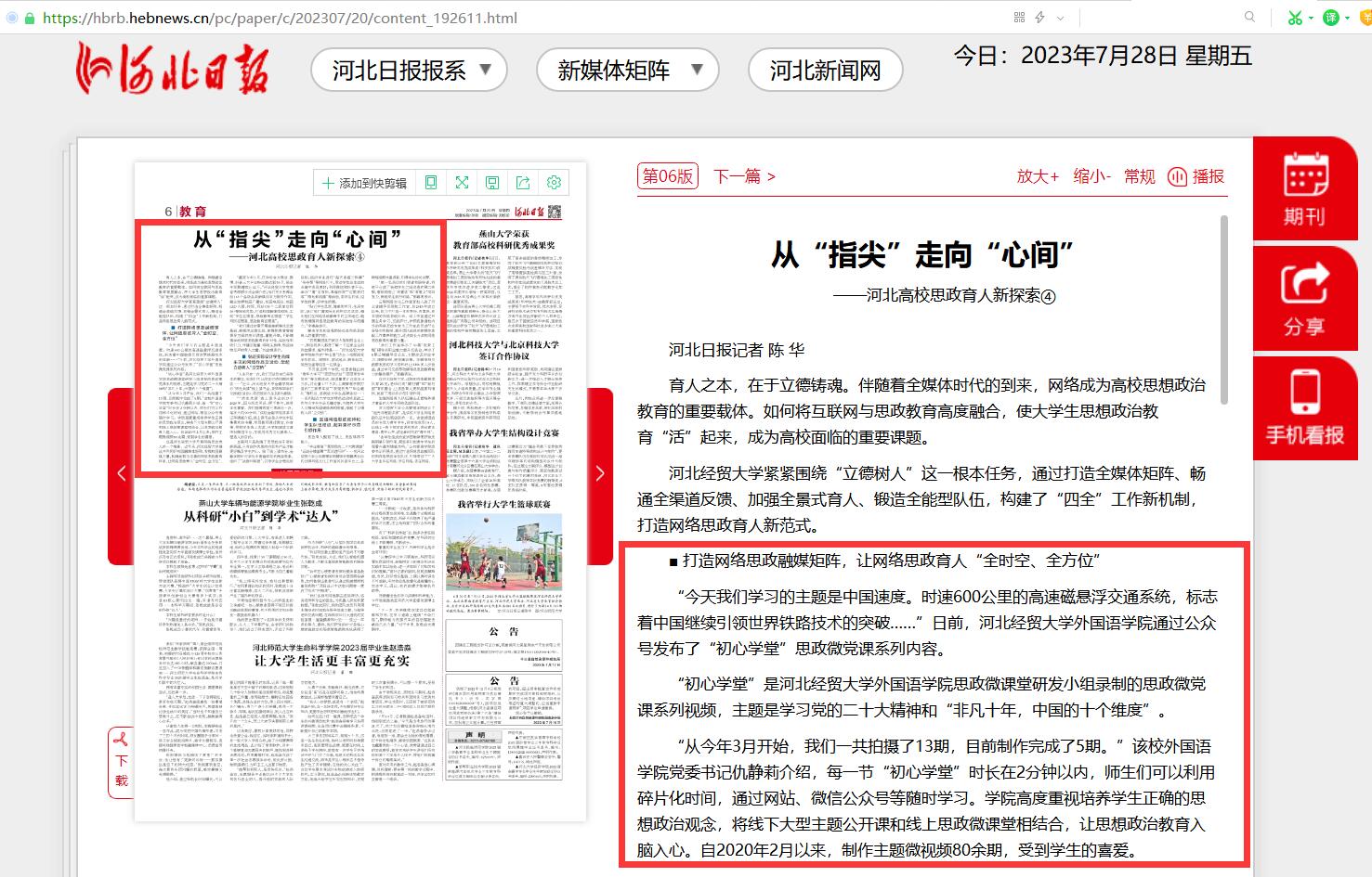 从“指尖”走向“心间”河北高校思政育人新探索——河北日报报道 EMC易倍初心学堂思政微党课