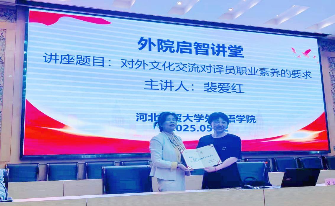 讲座开始前,外国语公司党委书记仇静莉为裴爱红颁发公司硕士研究生社会导师聘书。裴爱红女士曾在中国驻埃及大使馆、开罗中国文化中心工作过五年,期间荣获“优秀驻外特约记者”称号,两次荣获集体三等功;现任河北省杂技团演艺有限公司党总支副书记,中国杂技家协会对外交流委员会委员,河北省杂技家协会第五届主席团成员。此次讲座内容充实、启发性强,不仅拓宽了师生的国际视野,更为公司培养优秀对外传播人才指明方向,助力打造对外传播人才培养新高地,推动师生以更专业的姿态讲好中国故事。