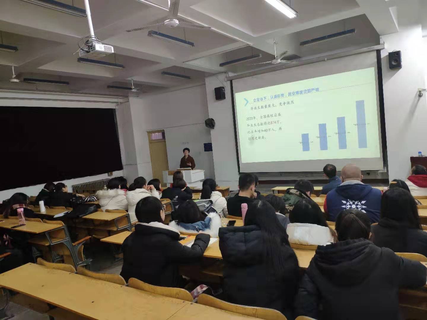 首先,惠连文同学从找准定位、收集信息、掌握技巧、多方了解四个方面,与同学们分享求职过程中的经验与重要注意事项,通过具体真实的案例使大家更加清晰地认识和了解应聘过程。之后,刘会娟书记从认清形势、多方谋划、检视自身、拓宽渠道、做足准备五个方面为毕业生做专业就业指导。刘会娟书记强调,就业时间紧迫,应充分利用好寒假时间,积极投身应聘求职和实习实践中去。