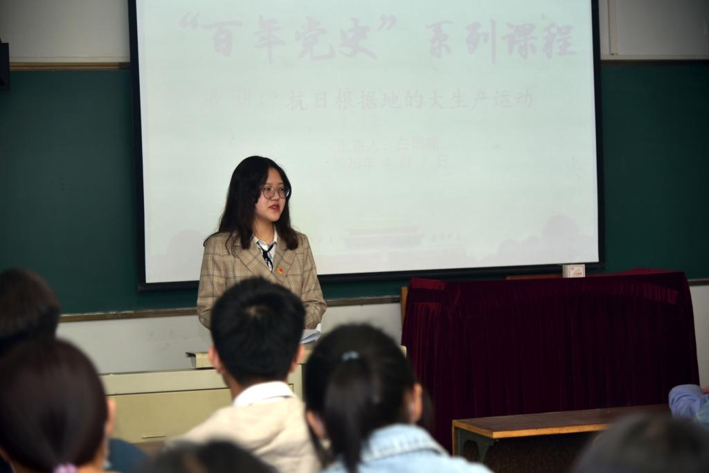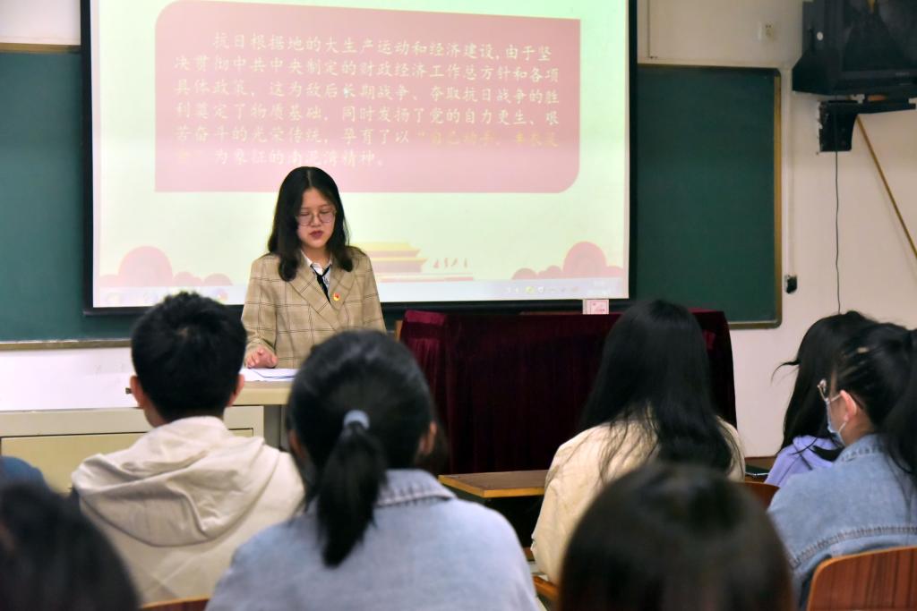 4月7日上午,外国语公司党委组织师生200余人分班开展本学期线下“开学第一课”,及时开展党史学习教育。课程伊始,刘会娟指出:“学史明理、学史增信、学史崇德、学史力行是总书记在党史学习教育动员大会上的明确要求,同学们要通过一系列党史学习教育的开展,牢记历史、不忘过去,牢固树立‘热爱祖国、热爱党、热爱社会主义’的家国情怀”。随后,参加公司思政微课堂--百年党史系列课程筹备工作的五位员工代表,围绕各自撰写的《开天辟地大事件》、《论持久战》、《重庆谈判》等部分党史课程进行宣讲,并就下一步《百年党史系列微课程》的开展与同学们进行充分交流并争取意见。