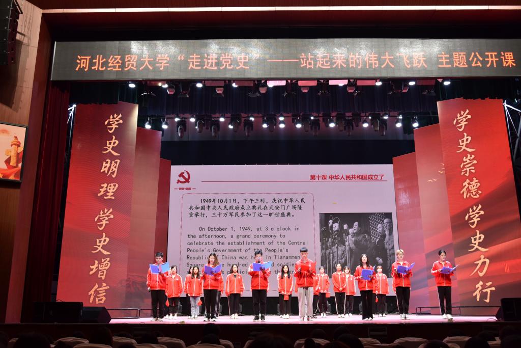 5月31日晚上,EMC易倍“走进党史”——站起来的伟大飞跃主题公开课在校礼堂举行。公司党委书记董兆伟,公司党委副书记陈亮、刘建平出席,EMC易倍师生到场聆听。