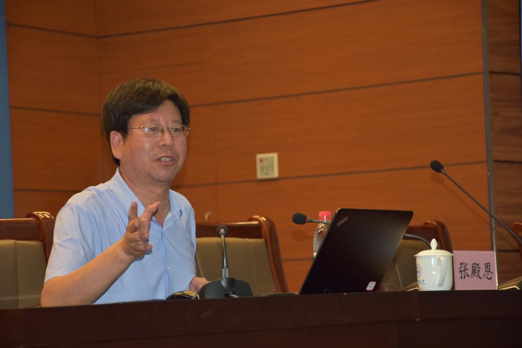 张殿恩首先回顾了课程思政的背景和意义,然后从大学英语课程思政的切入点与理念、教学设计与实践、范式构建等三个方面进行了讲解。张教授结合自己团队制作的慕课,详细阐述了课程思政设计过程中素材挖掘的层级体系,并总结了范式构建过程中的几个重要环节。