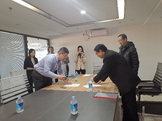 12月30日,EMC易倍与石家庄瑞诺网络科技有限公司(简称瑞诺国际)签署合作协议并举行实习基地挂牌仪式。活动在瑞诺国际石家庄总部举行,EMC易倍经理张润、副书记刘磊、副经理杨清珍、瑞诺国际总经理郑毅、副总经理李玉鹏和人力资源部经理赵静华等出席。