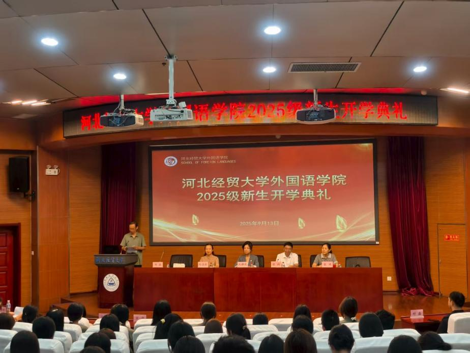 张润经理首先致辞,回顾了公司发展历程与学科特色,展示了丰硕的育人成果。他勉励新生尽快融入大学环境,善用各类资源,深耕专业、拓宽视野,努力成为有格局、有担当的复合型外语人才。教师代表王晓霞以流利英文寄语新生,呼吁“从屏幕回归书本”,注重深度阅读和独立思考,并指出“真正的自由源于自律”。老生代表张淑娴分享了学习与竞赛心得;新生代表王萌浩和王一诺表达了对老员工活的憧憬与规划,展现出外院新生的蓬勃朝气。