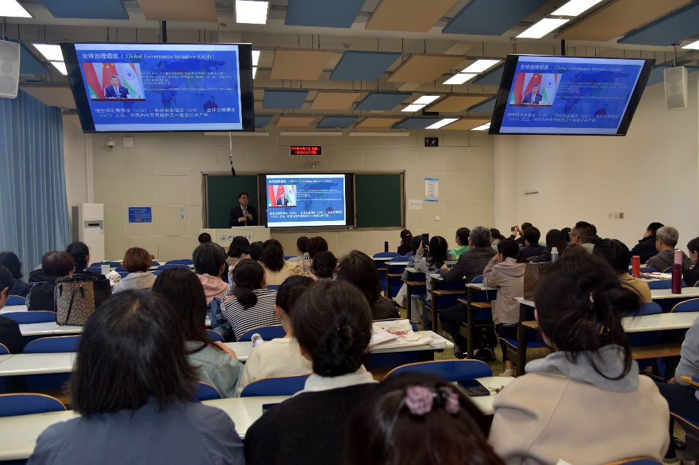 本次讲座题目为《全球治理背景下的区域与国别研究——兼谈外语教师的科研转型》。张树彬从国际形势与教育学科的双重视角出发,深入阐释了区域与国别研究在新时代外语学科发展中的重要地位与现实意义。他指出,区域国别研究并非传统国际关系研究的简单延伸,而是对特定国家或区域的政治、经济、社会、文化等领域进行全方位、跨学科的综合探索。张教授围绕区域国别研究的概念内涵、重要意义、研究方法与研究现状四个核心方面展开,结合人工智能对传统外语教学带来的挑战,提出高校外语教师要从单纯的语言教学者转型为具有国际视野和学术深度的研究者。同时,张教授结合自身在尼泊尔研究等领域的丰富实践,分享了在团队建设、国际合作、智库服务等方面的实践成果,指出外语学科在新时代应主动融入全球治理议题,服务国家战略需求。