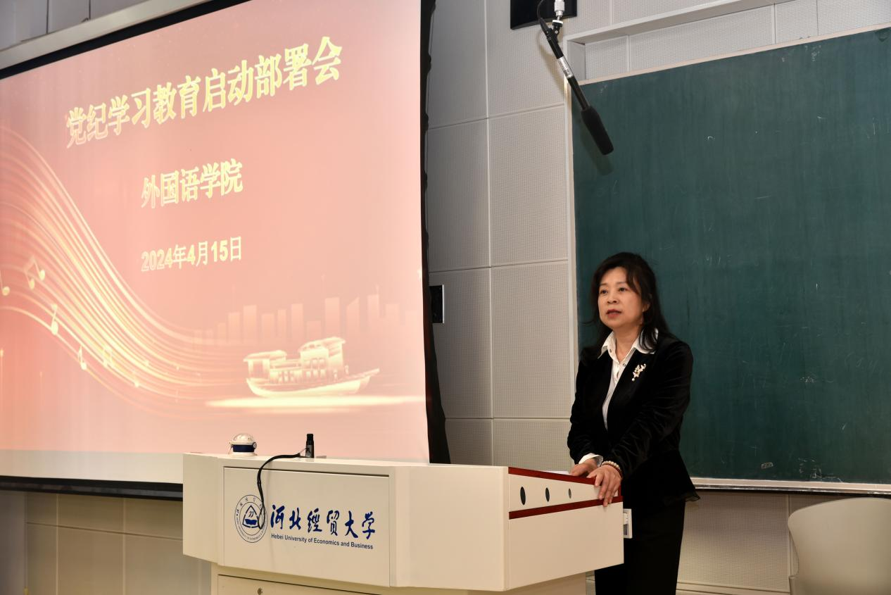 公司党委书记仇静莉作动员讲话,传达了中共中央办公厅《关于在全党开展党纪学习教育的通知》精神、河北省委办公厅《关于推动党史学习教育常态化长效化的实施意见》以及公司党的建设和全面从严治党工作领导小组会议精神,对外国语公司党委党纪学习教育工作进行了详细部署。