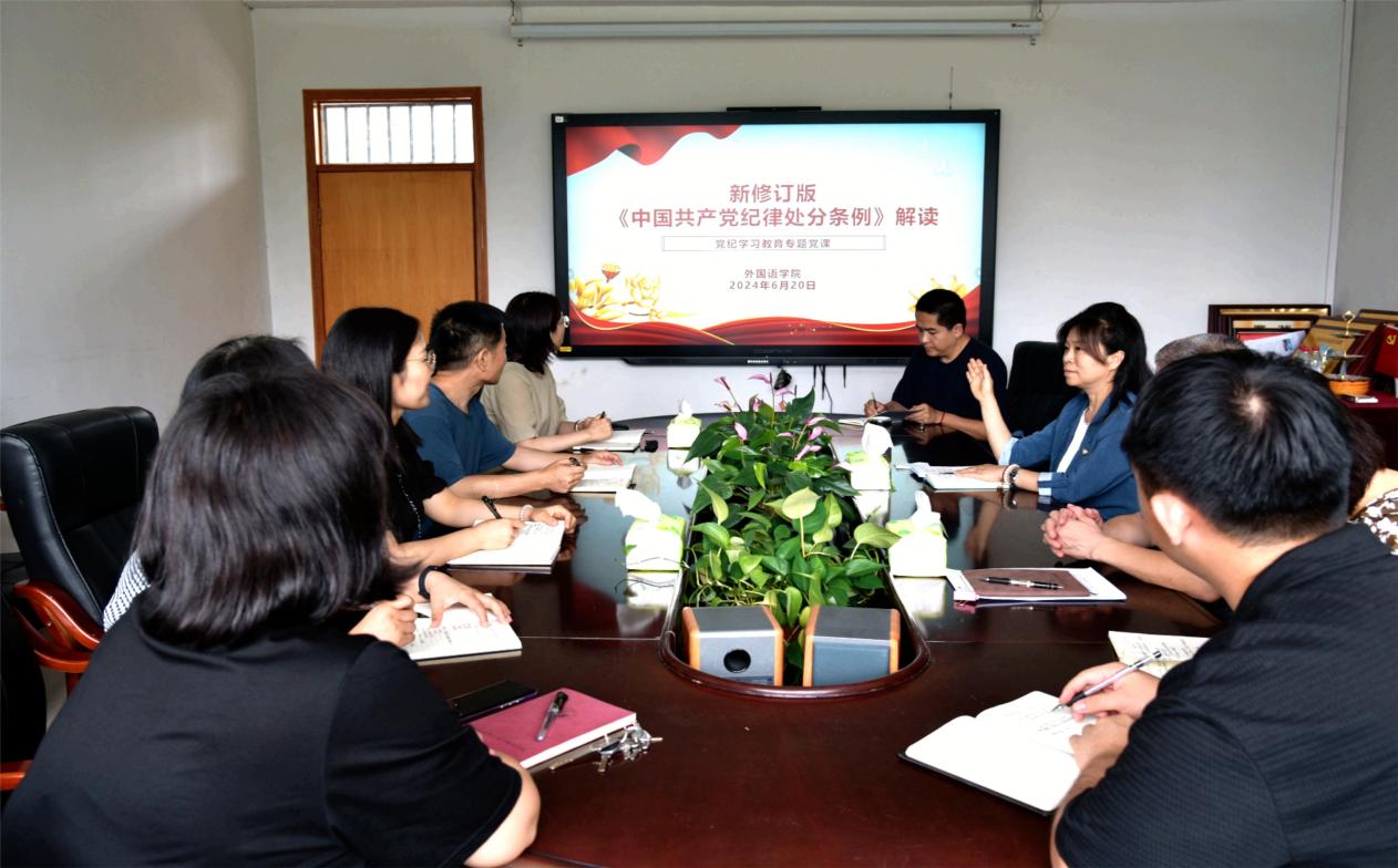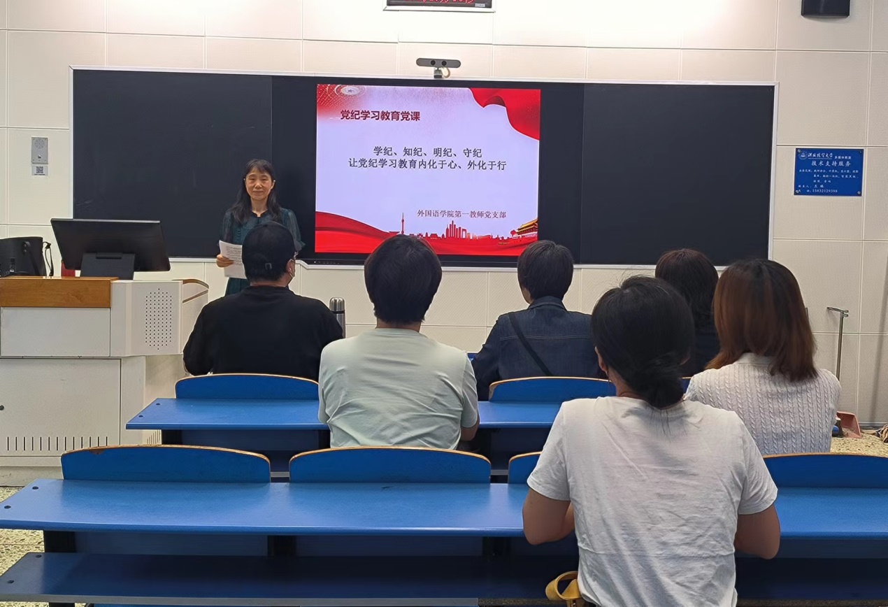 下午,外国语公司党委书记仇静莉为全体行政教职工讲授党纪学习教育专题党课,其他各支部也均开展了支部书记讲党纪学习教育专题党课。