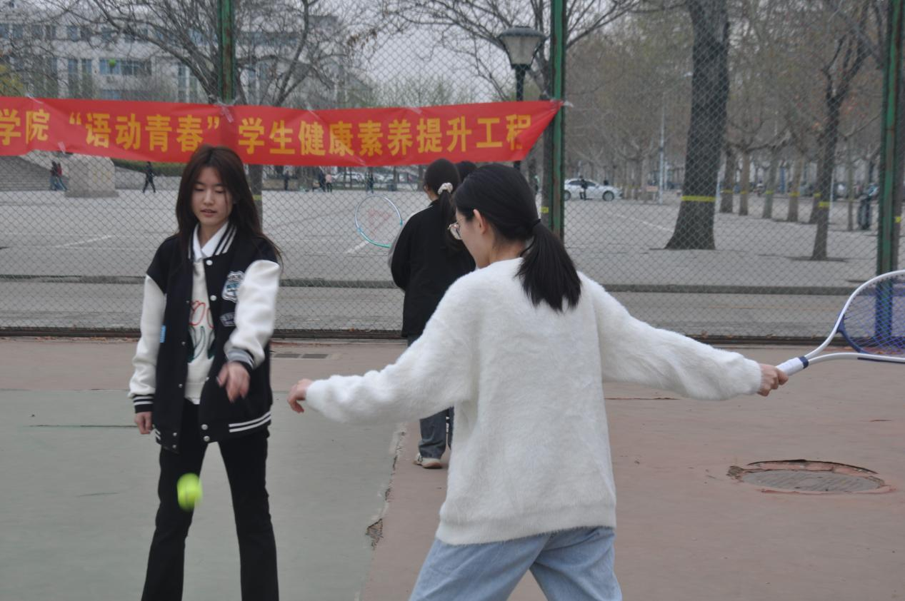 4月1日下午,EMC易倍在公司网球场举办“语动青春”员工健康素养提升工程启动仪式暨无“网”不胜网球训练营开营仪式。公司党委书记仇静莉、党委副书记刘磊、副处级辅导员宋丹、商务英语专业2023级班主任、体育教学部教师张嘉奇、院团委书记付磊及50余名同学参加。