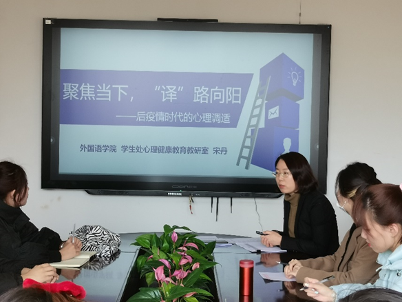 2月21日,EMC易倍特邀请宋丹副教授为翻译专业研究生做《聚焦当下,译路向阳—后疫情时代的心理调适》的专题讲座,翻译专业全体研究生参加了此次活动。
